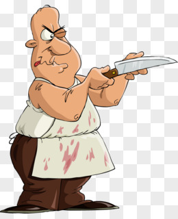 手绘男人手拿菜刀免抠元素