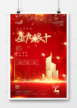 红金大气金九银十房地产推销海报设计