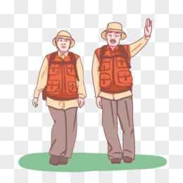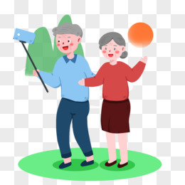 手绘卡通老年人游山玩水自拍元素