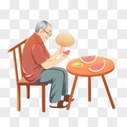 手绘老人夏季吃瓜乘凉免抠元素