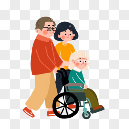 手绘关爱老人推着轮椅的老人元素