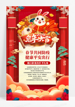 兔年大吉2023兔年春节防疫节日海报