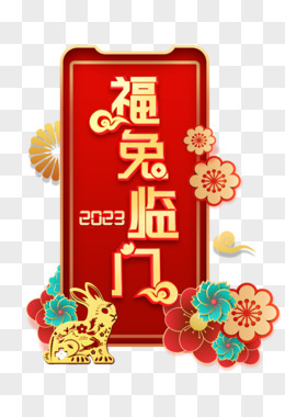 喜庆新年2023兔年吉祥卷轴免抠合成元素