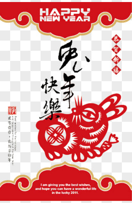 卡通创意兔年新年快乐剪纸艺术字设计
