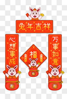 一组卡通国潮风2023兔年对联兔年春联素材