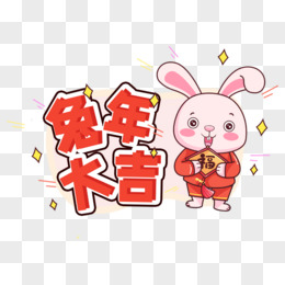 手绘国潮风免抠新年贴纸之兔年大吉免抠元素