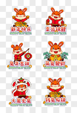 手绘卡通兔年贴纸集合免抠元素