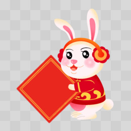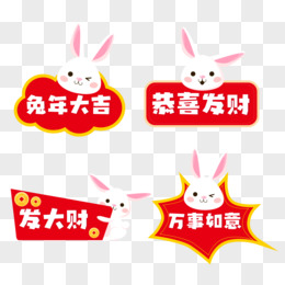 一组扁平矢量兔子手举牌套图装饰合集素材