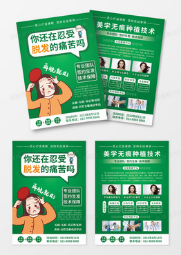 绿色简约大气卡通你在忍受脱发的痛苦吗无痕种植发