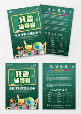 绿色卡通少儿托管辅导班宣传单