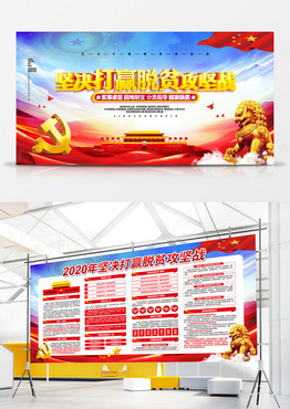 大气简约坚决打赢脱贫攻坚战党建党政宣传展板设计