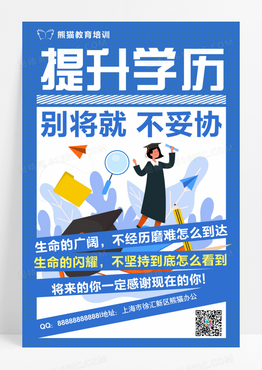 蓝色简约提升学历别将就不妥协招生宣传海报