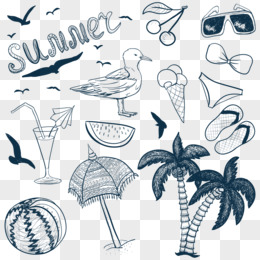 手绘夏季新蜡笔涂鸦贴纸套图装饰素材