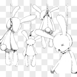 一组手绘水墨风线描兔子合集系列六免抠素材
