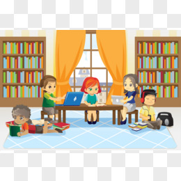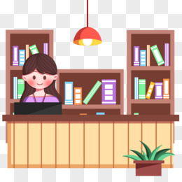 手绘卡通图书馆前台借书处素材