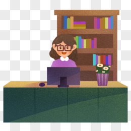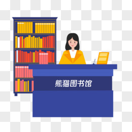 手绘卡通图书馆前台人物素材