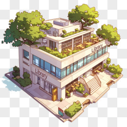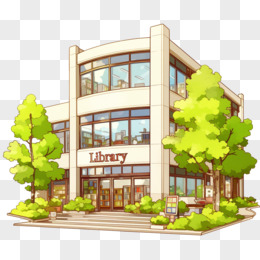 卡通风公共建筑图书馆免抠元素