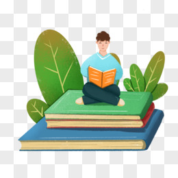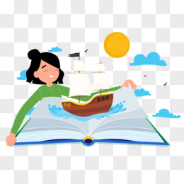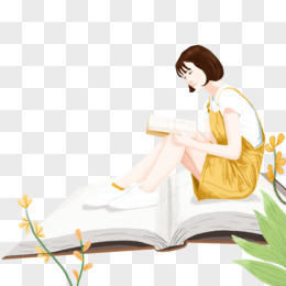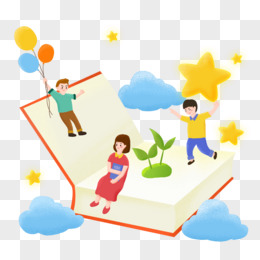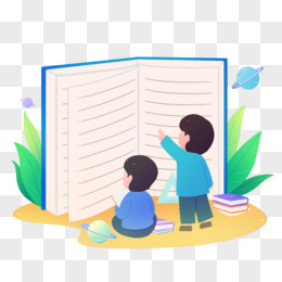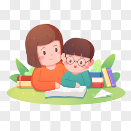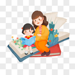 手绘卡通妈妈带女儿阅读书籍场景免抠素材
