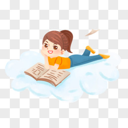 卡通手绘女孩看书免抠元素