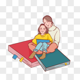 手绘卡通亲子阅读场景元素免抠元素