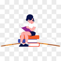 卡通手绘男孩坐在书本上看书免抠元素