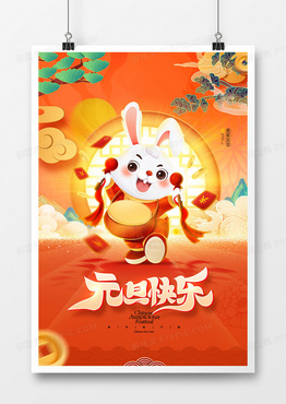 卡通矢量一对兔年戴兔头帽的福娃素材