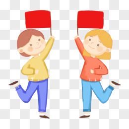卡通手绘风小孩拿小旗子庆祝免抠元素