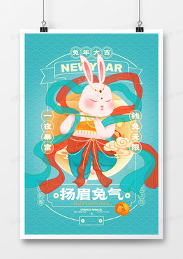 创意2023扬眉兔气敦煌新年插画系列海报设计