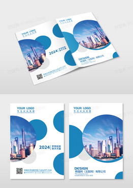 蓝色简约几何圆形商务企业宣传画册封面