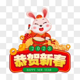 手绘风2023新年兔年恭贺新禧手举牌素材