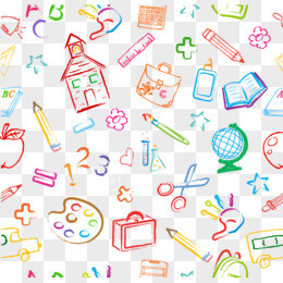 一组彩色粉笔涂鸦学习相关免抠元素合集