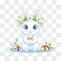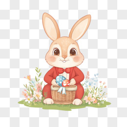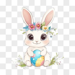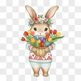 插画复活节复活兔鲜花免抠元素