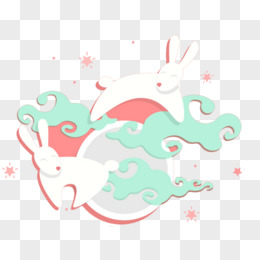 手绘玉兔赏月免抠元素