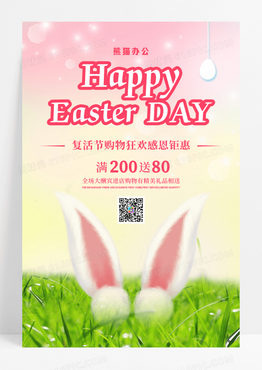 可爱卡通兔耳朵复活节宣传海报