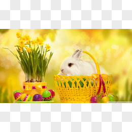卡通一个复活节兔子提着一筐复活节彩蛋免抠元素