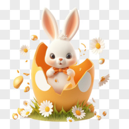 3D卡通兔子和一大筐复活节彩蛋免抠元素