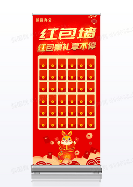 年终红包墙年会红包墙红色喜庆红包墙红包好礼享不停红包墙展架易拉宝设计