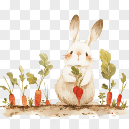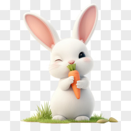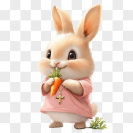 3D可爱兔子带着十字架项链吃萝卜的元素