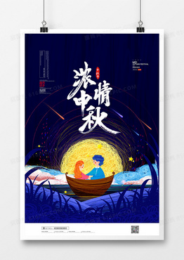 中秋节之手绘卡通女孩跟小兔子一起赏月