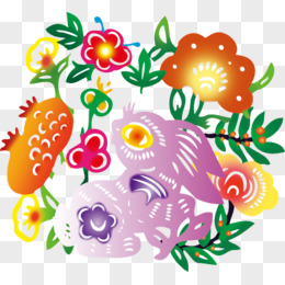 十二生肖剪纸之兔免扣元素