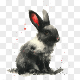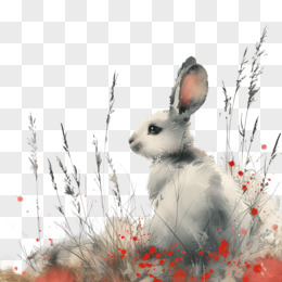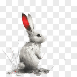 一组卡通水墨风十二生肖合集系列二之兔子免抠素材