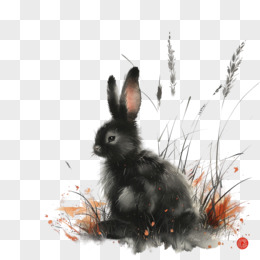 一组手绘水墨风线描兔子合集系列六免抠素材