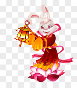 卡通手绘可爱不同月份兔兔场景系列之九月拿着月饼元素