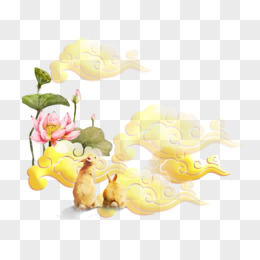 敦煌风可爱兔子抱着月饼中秋节创意元素