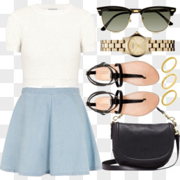 一组手绘插画风唯美女性四季穿搭全身合集之夏天穿搭素材