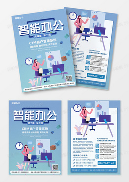 蓝色渐变现代简约大气渐变科技智能办公宣传单