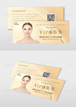 简约时尚金色线条美容优惠券代金券医美VIP体验券美容体验券