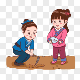 手绘卡通古人锄地元素