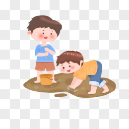 手绘两个男孩在锄地素材