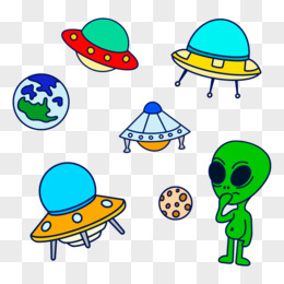 一组卡通蓝色线条宇宙飞船贴纸合集系列五素材